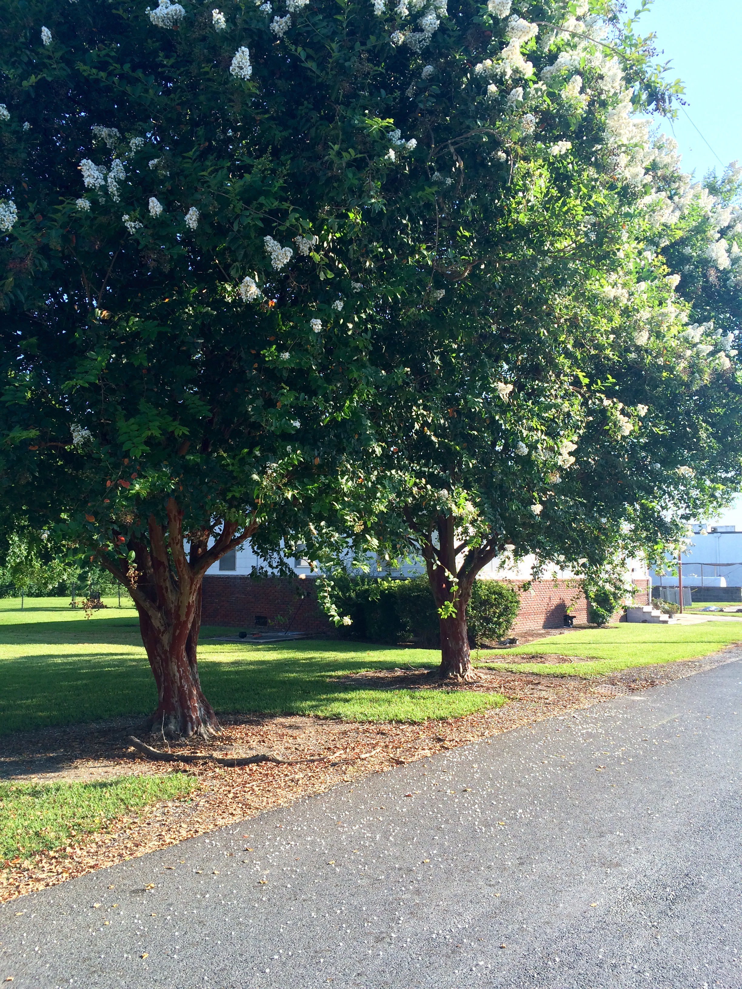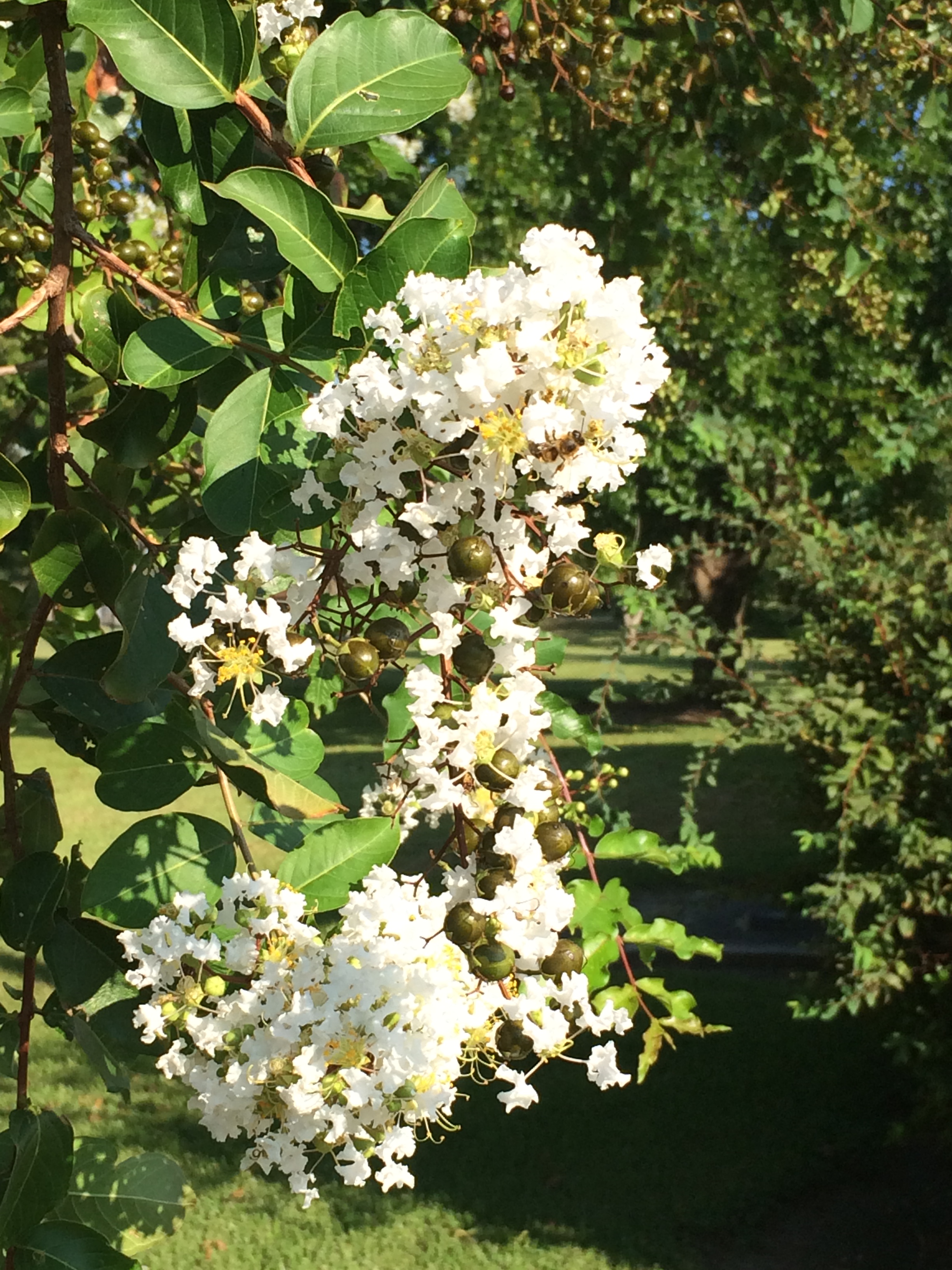 I just love Crape Myrtles this time of year. Especially ones with white blooms. When their