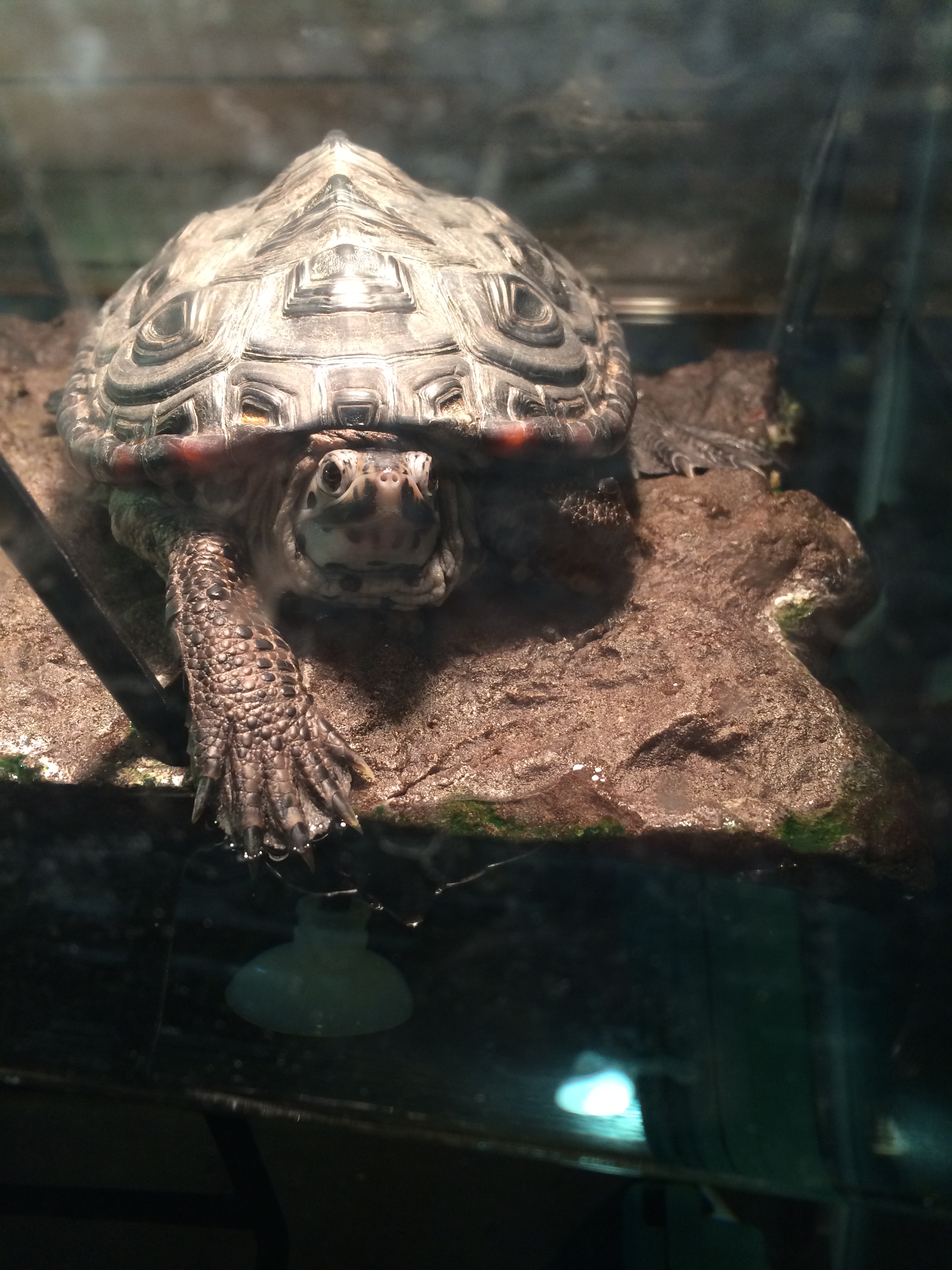 Everyone, meet Harley – my Diamondback Terrapin. I have had him since he was a hatchling and he is most definitely the friendliest turtle on the planet! He is always coming up to see me, and if you put your hand in the water, he will literally swim into your hand. Un