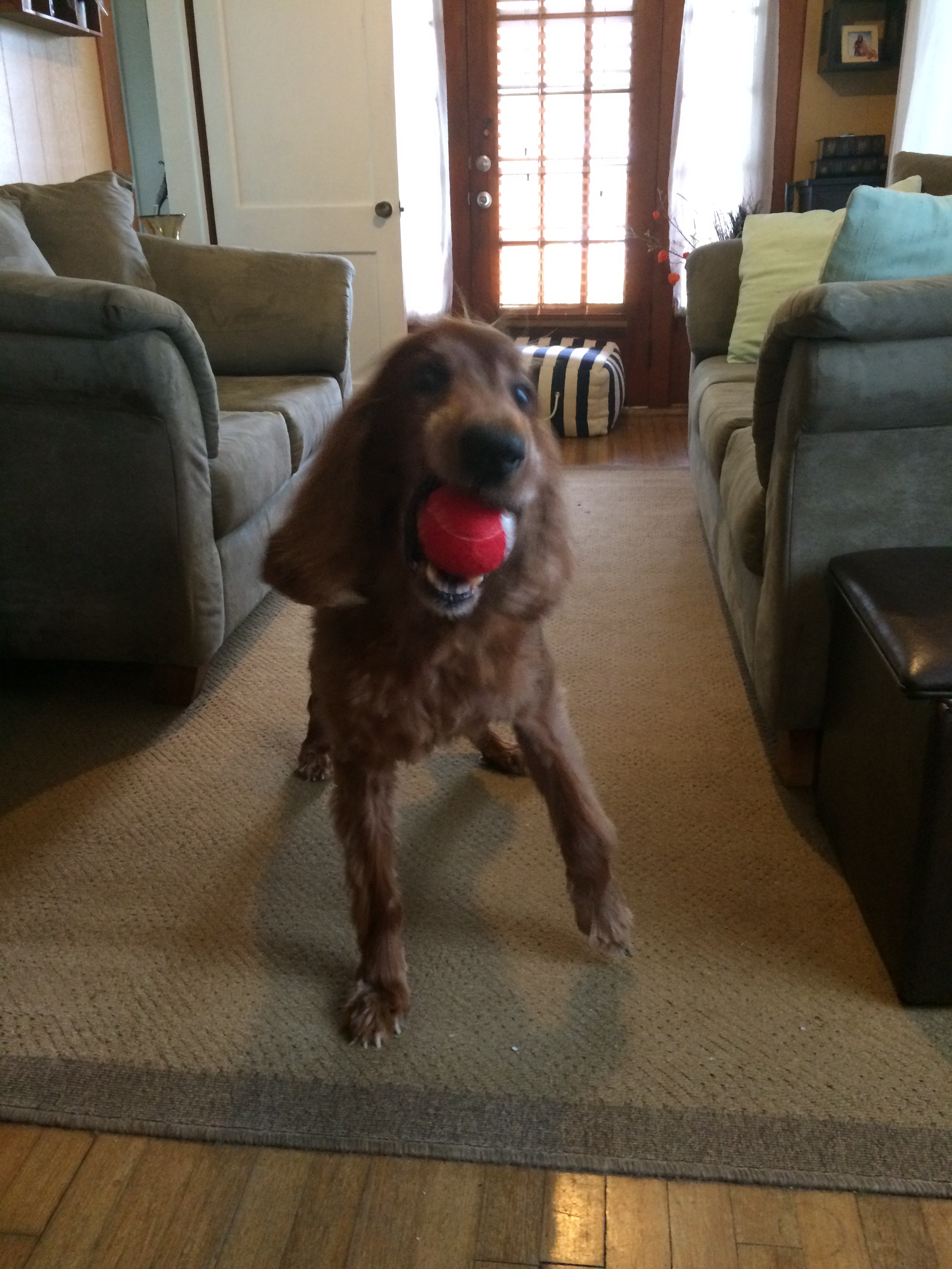 Duke is our 12 year old Irish Setter. His old bones still get him through and he loves to go on trips!